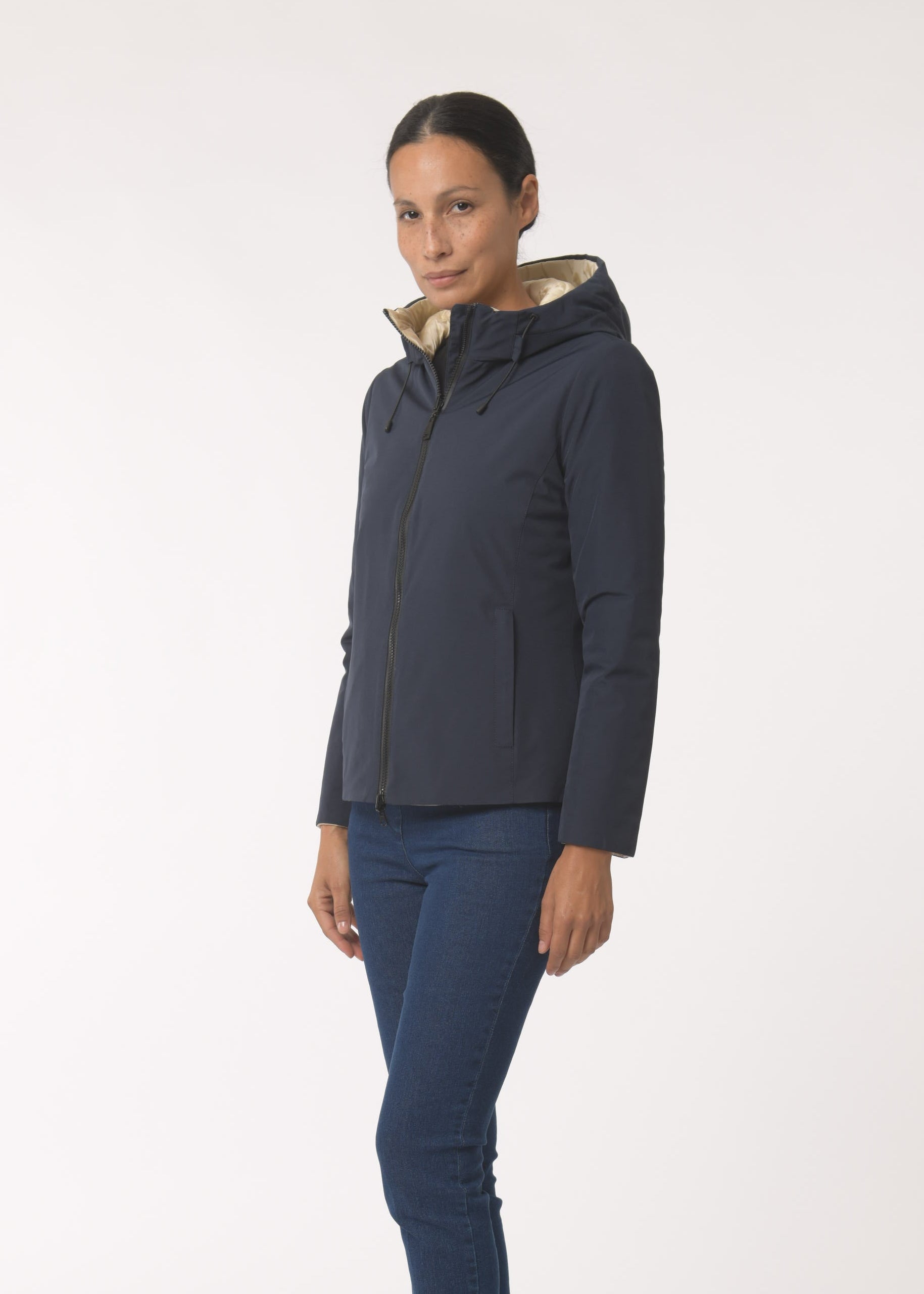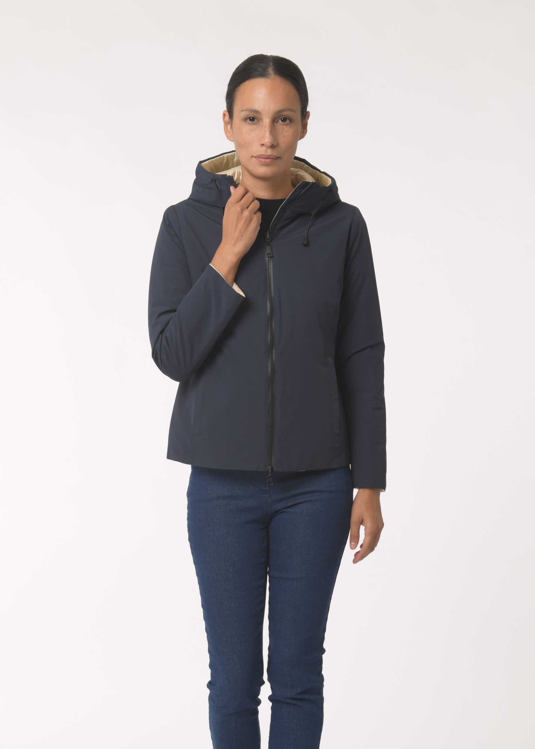 Giubbino ultra-light reversibile in tessuto tecnico con imbottitura in ecopiuma.