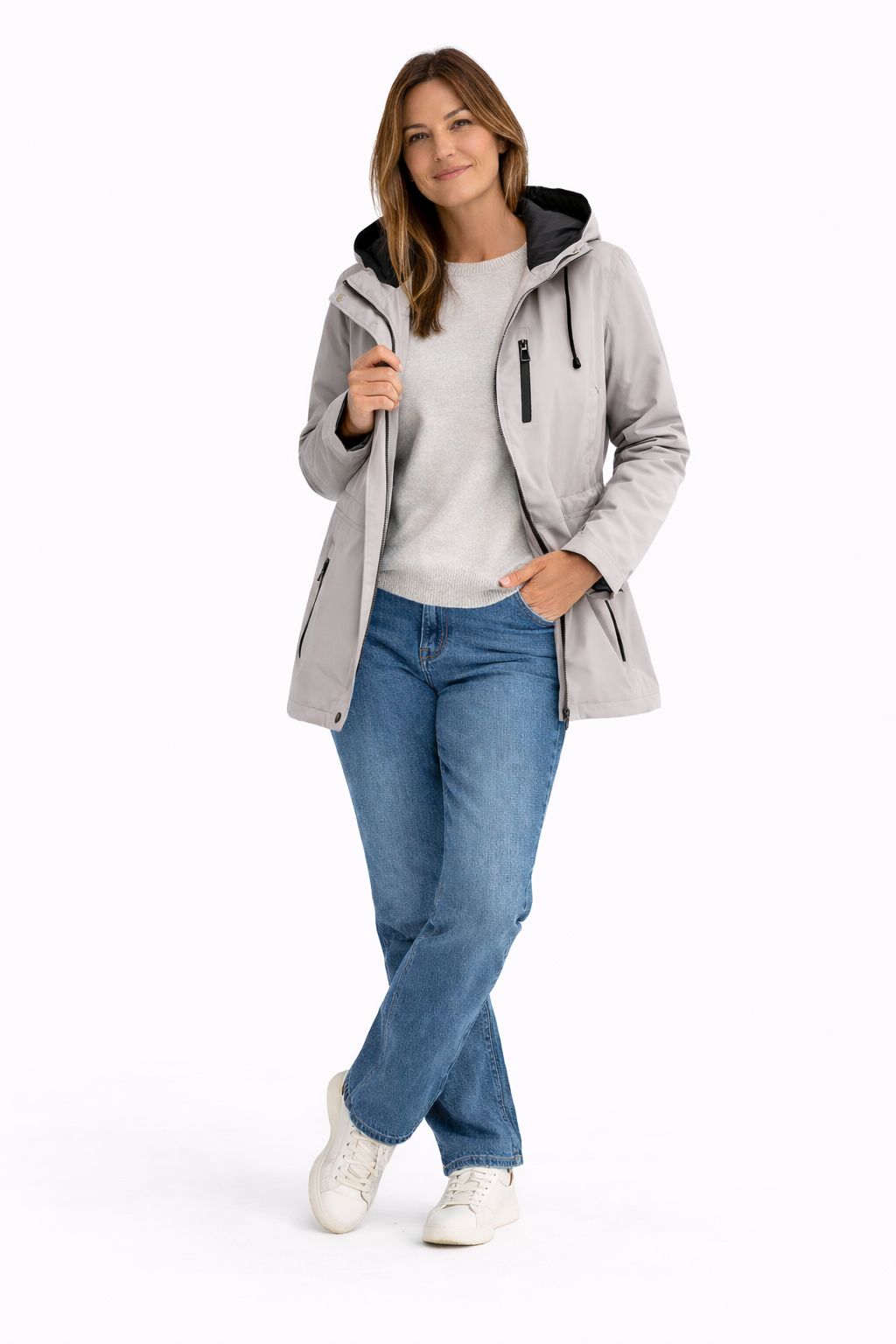 - Il modello è dotato di cappuccio protettivo chiusura frontale con zip e