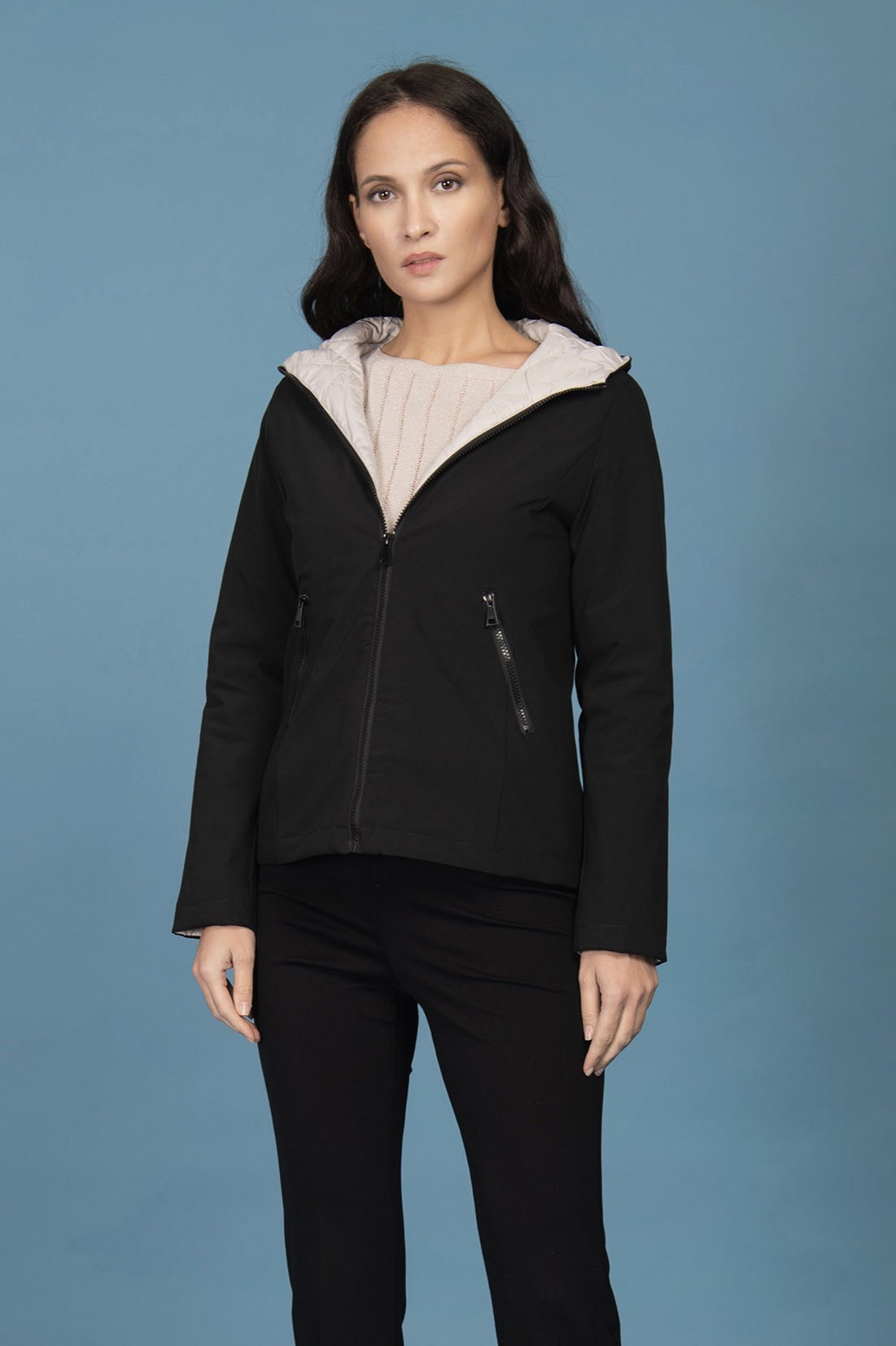 Giubbino imbottito con ovatta termica. Materiale esterno di tipo tecnico simil scuba.
