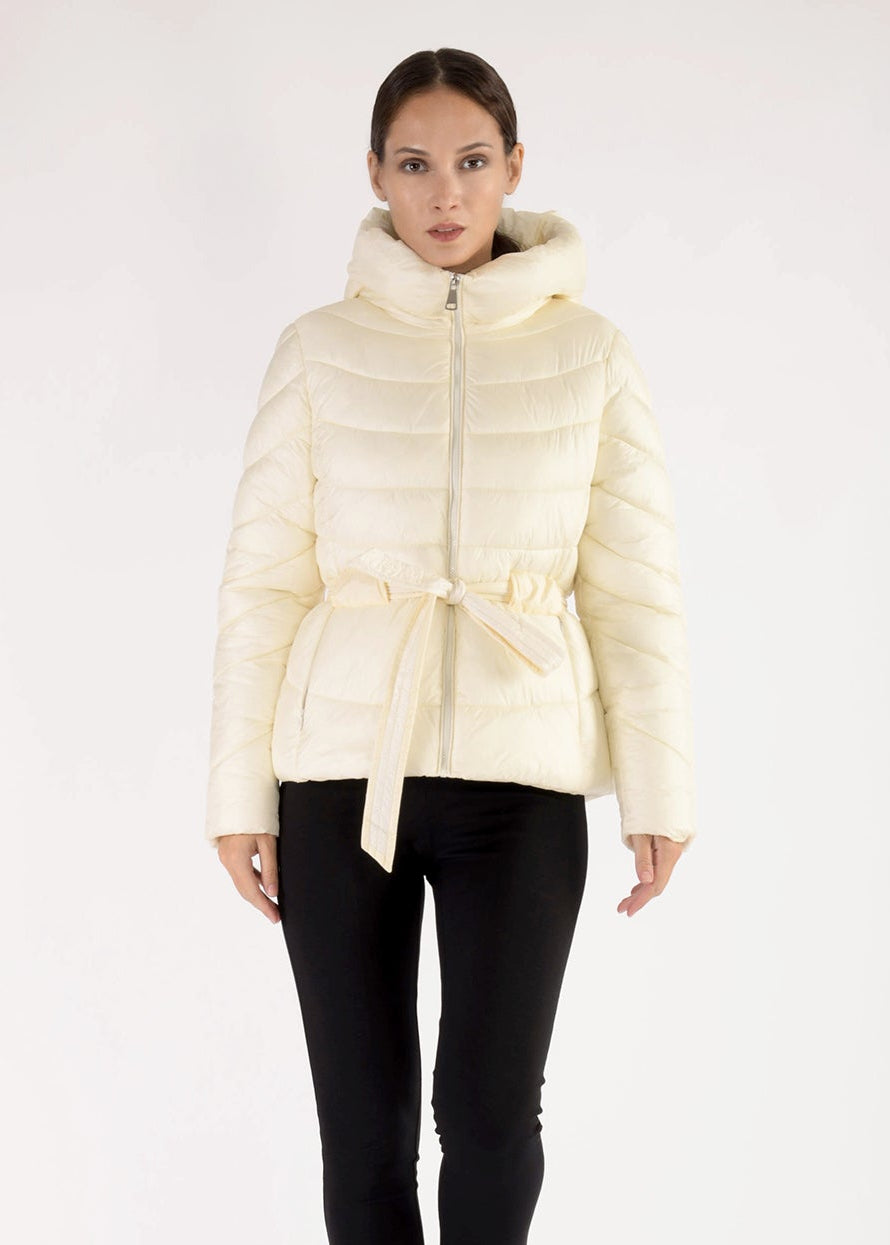 Giaccone donna imbottito in ovatta termica con collo a vulcano.