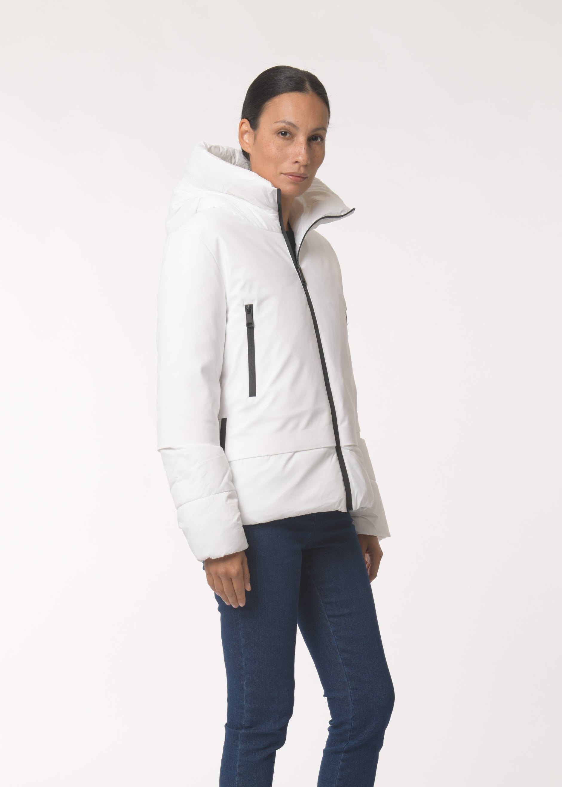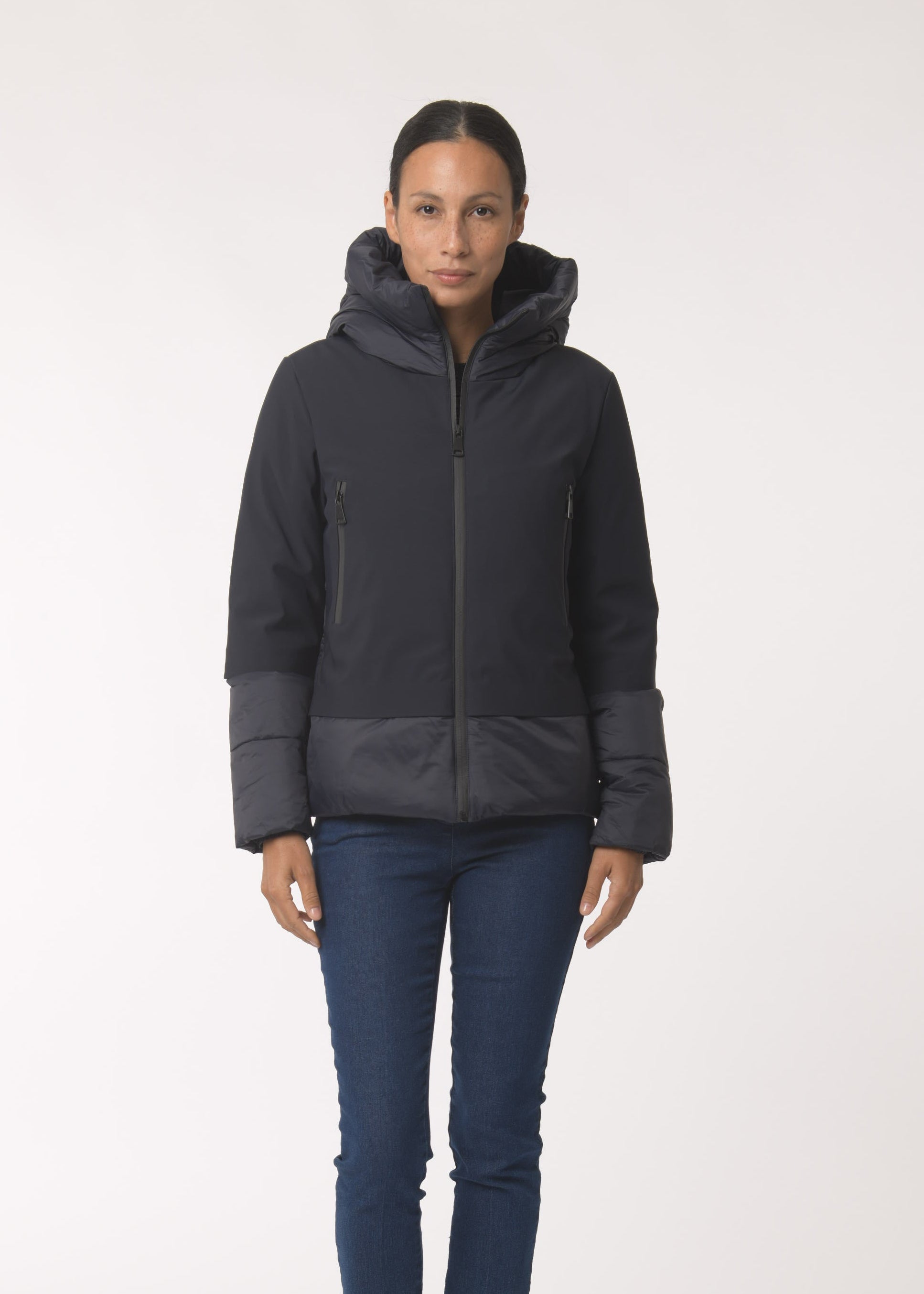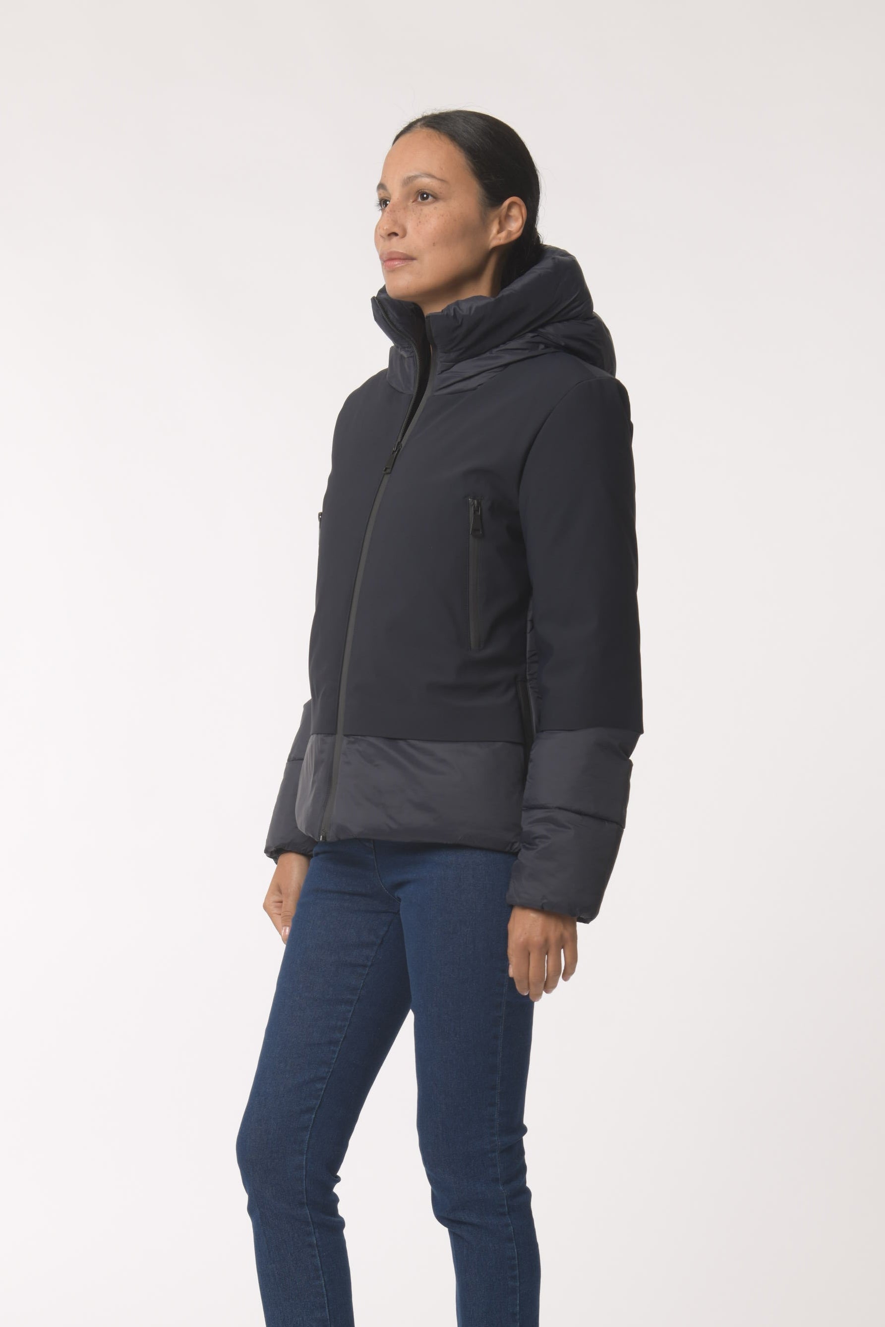 Giubbino in bitessuto tecnico con imbottitura in ecopiuma.