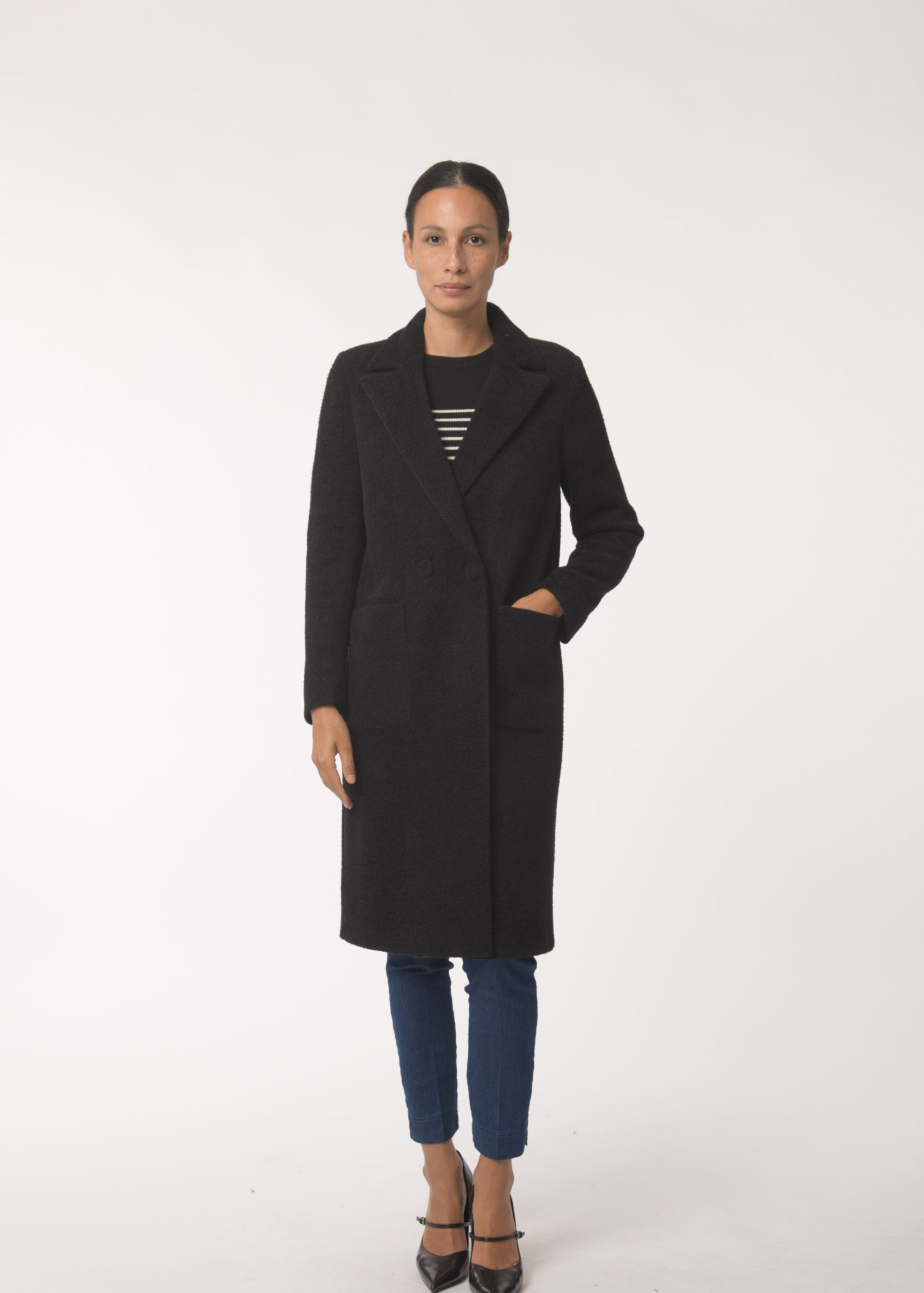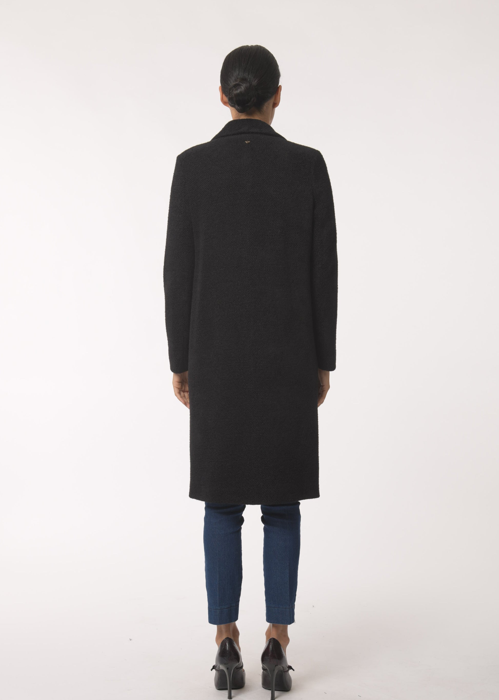 Cappotto in panno con bottoni in tessuto e tasche applicate.