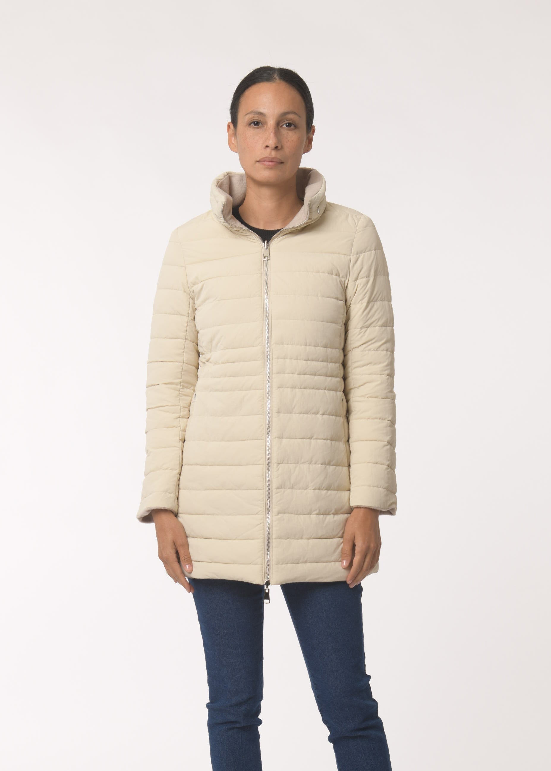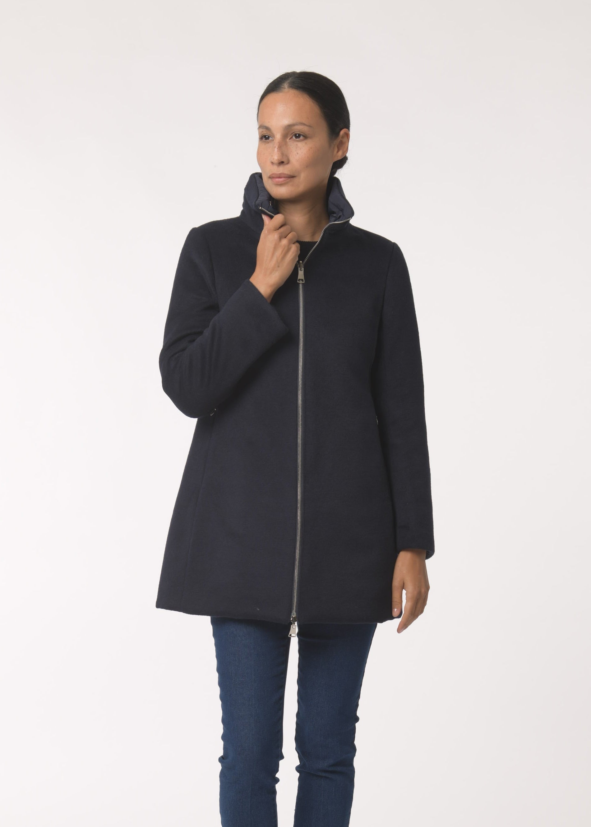 Cappotto in misto lana reversibile con imbottitura in ecopiuma premium.
