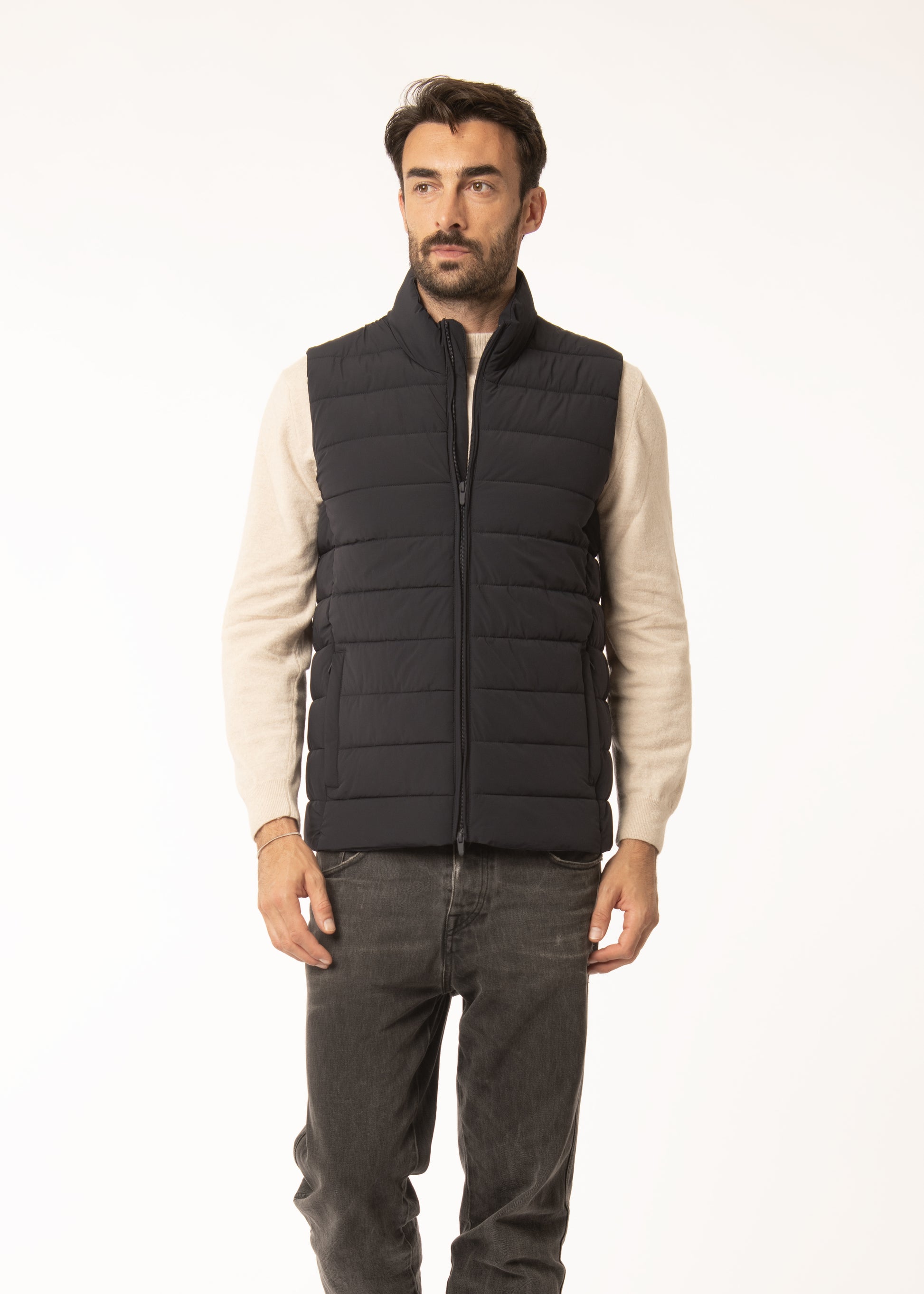 Smanicato in tessuto tecnico con imbottitura in ecopiuma.