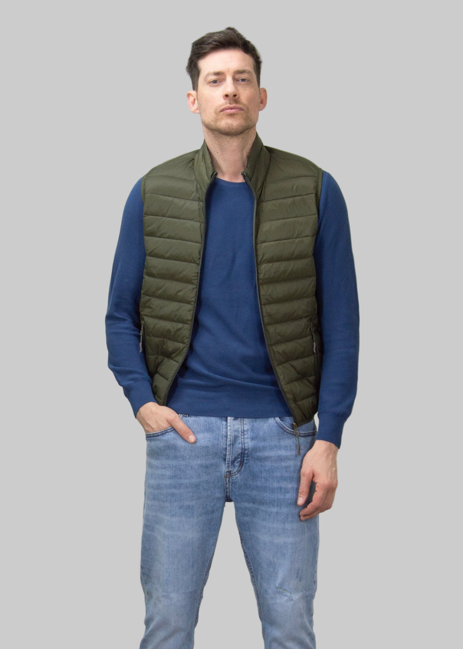 Smanicato in ecopiuma con colletto alla coreana senza cappuccio.